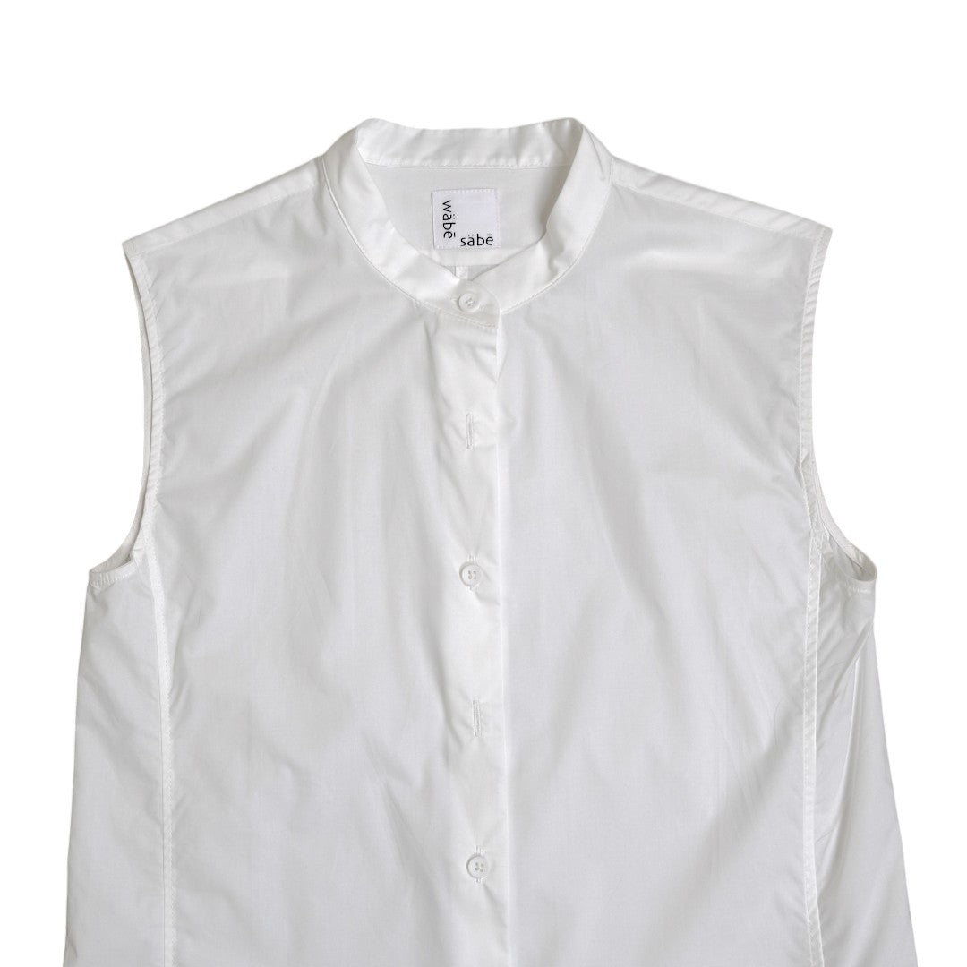 The Pura Shirt blends modern minimalism with timeless structure. Made from crisp 100% cotton, this sleeveless button-up features a mandarin collar and straight silhouette, perfect for layering or wearing solo.